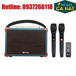 - Công suất thực 100W RMS, sử dụng Pin Lithium lên đến 8 giờ, pin có thể tháo rời dễ dàng thay thế.